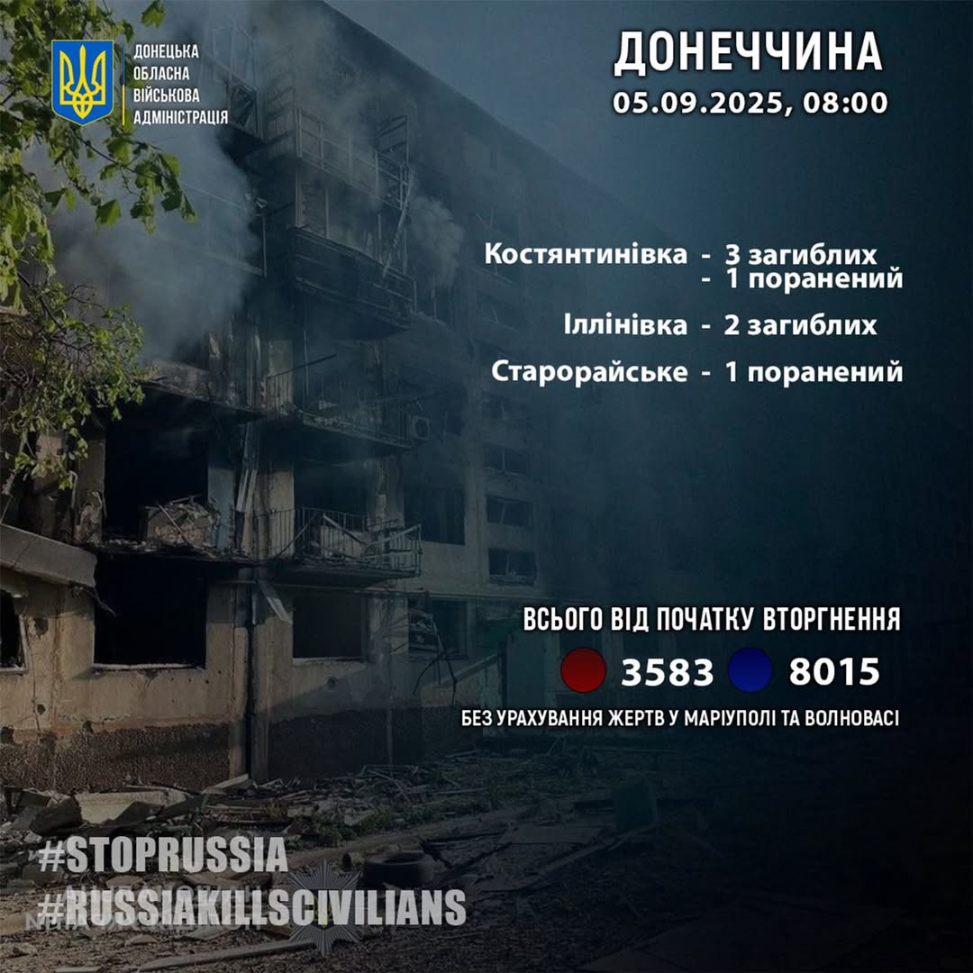 Російська армія минулої доби, 4 вересня, вбила п'ятьох жителів Донецької області.