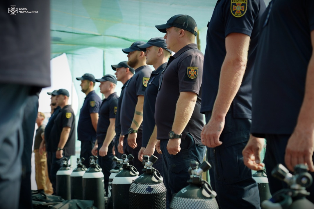 У Черкасах перший заступник голови ДСНС Віталій Миронюк разом із представниками посольства Франції в Україні підбили підсумки першого етапу навчання для водолазів-саперів підрозділів ДСНС з різних областей за програмою "EOD3+ підводне знешкодження".