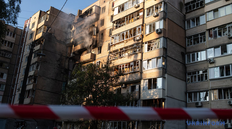 Наслідки нічної атаки в Святошинському районі / Фото: Володимир Тарасов. Укрінформ