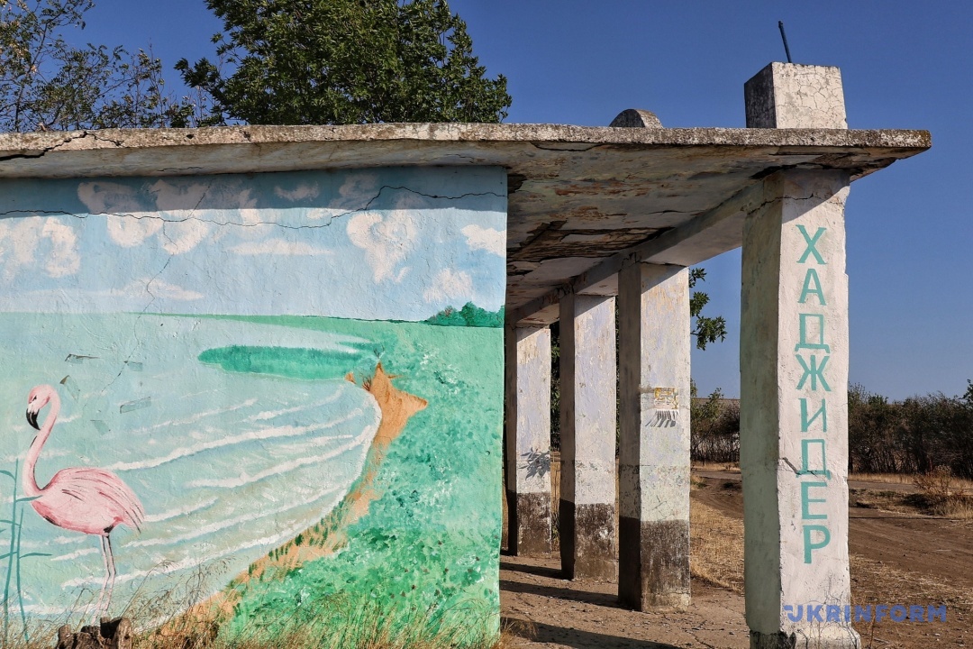 На під’їзді до Лиману – зупинка транспорту, розмальована розкішними фламінго. Це – «візитівка» селища, розташованого на березі лиману Хаджидер, куди з 2021 року величезними зграями прилітають ці «вогняні» птахи.