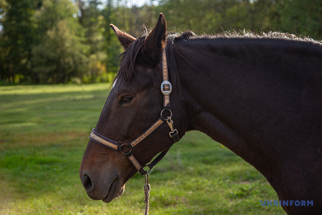 - Це кобила, їй 10 років, перші чотири роки свого життя вона брала участь у кінних перегонах. Виступала, це рисачка. У неї були досить гарні показники, але після того років шість була просто в табуні. Не бігала, нічого. І зараз ми її купили навіть більше для ветеранів, для прокатів. Вона слухняна, але ми все одно її навчаємо, щоб була підхожою і для іпотерапії, – ділиться.