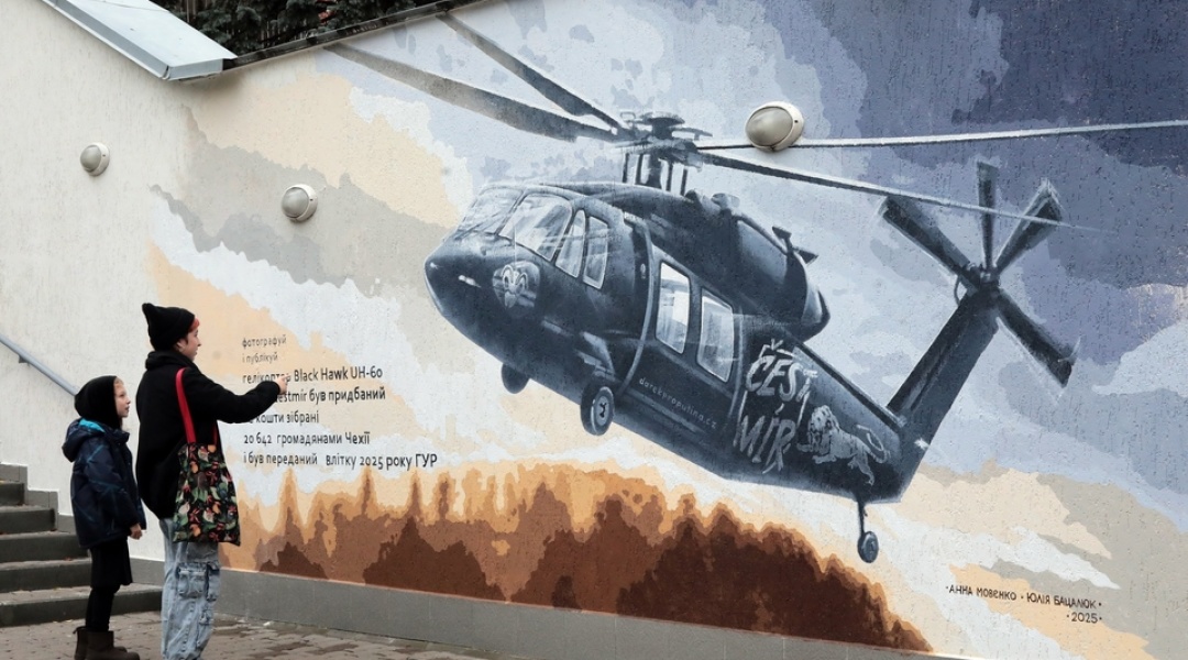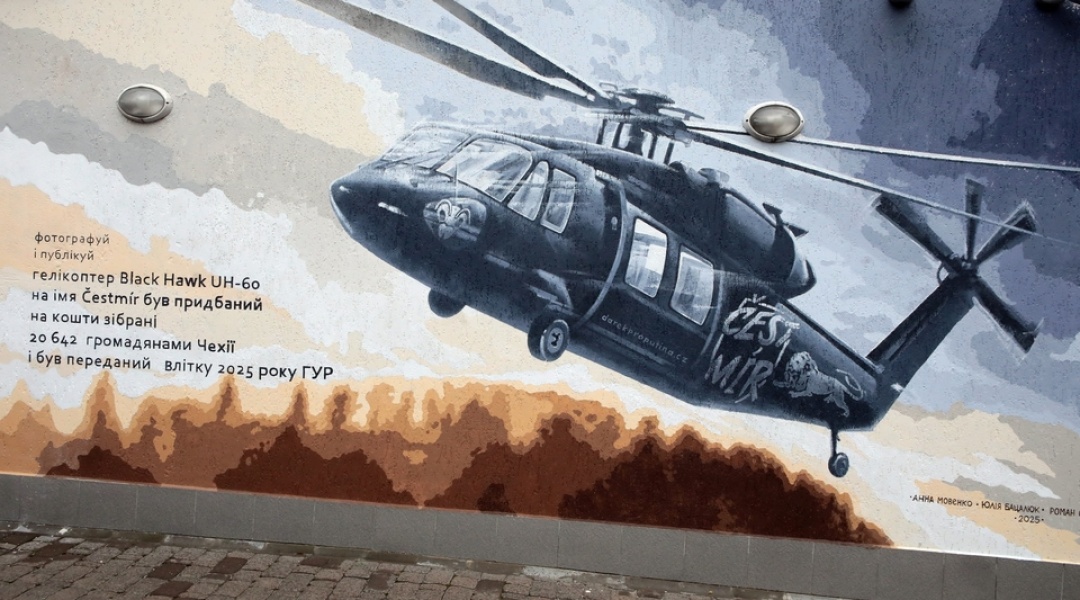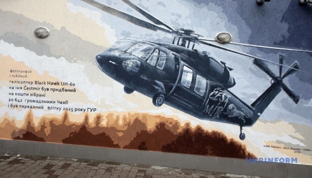 У Києві відкрили мурал на честь гелікоптера Black Hawk, подарованого чеською громадою