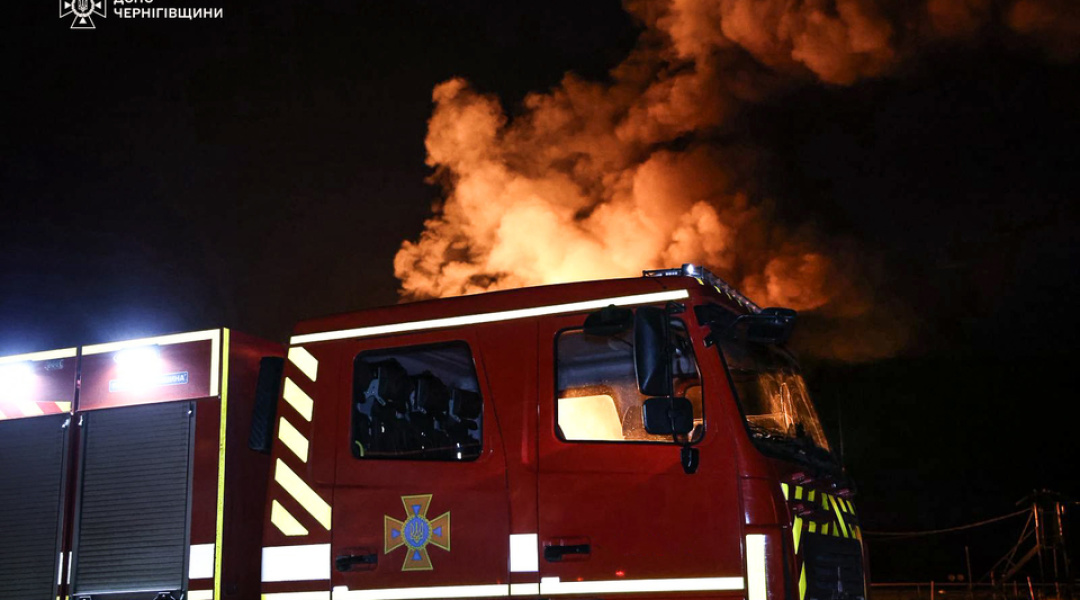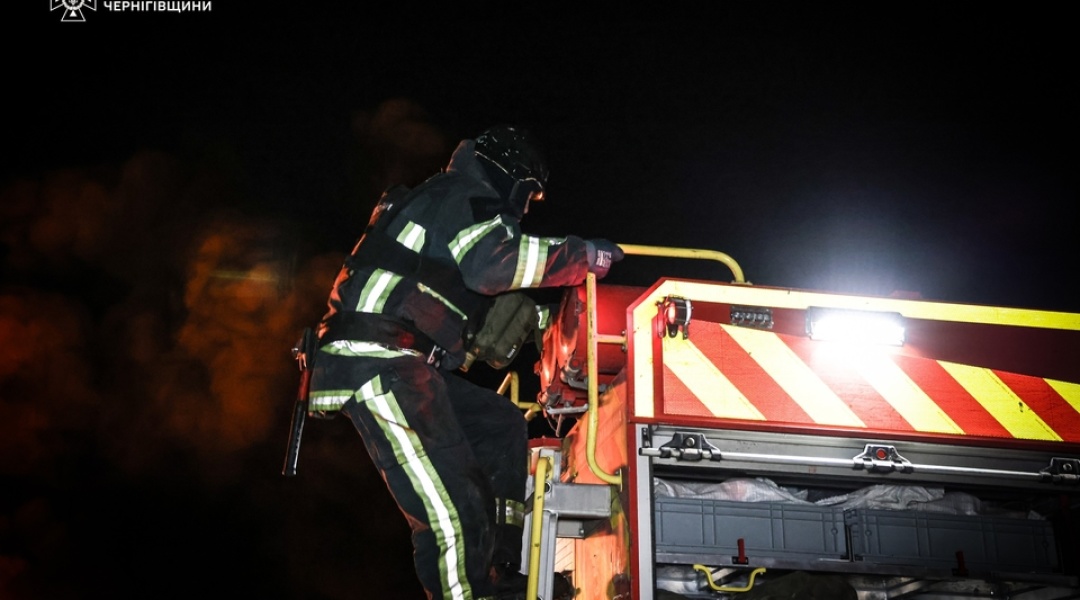 "Увечері у Ніжинському районі ворог хвилею дронів атакував один з об’єктів цивільної інфраструктури. Виникла пожежа, підрозділи ДСНС працюють над її ліквідацією", - йдеться у дописі.