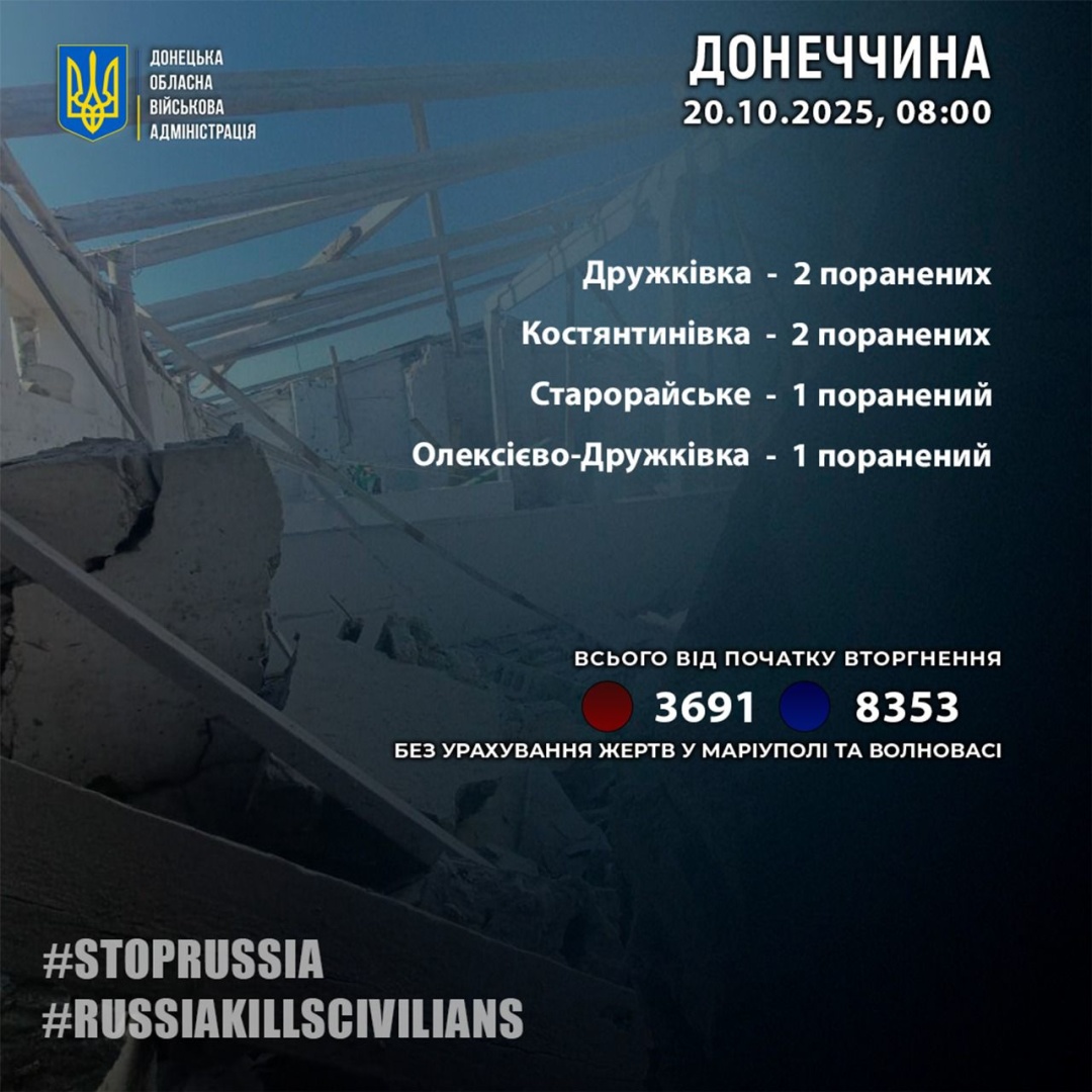 Росіяни поранили людей у Костянтинівці, Дружківці, Старорайському та Олексієво-Дружківці.