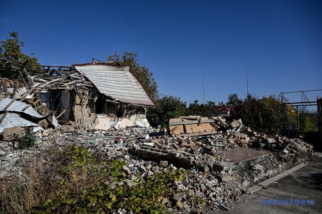 «Ну от і починається Малокатеринівка. Звідси до бойових дій 5 кілометрів. Ворог також намагається зайти з боку колишнього водосховища, запускає свої ДРГ. Атакує кожен день дронами, КАБами бʼє. Нещодавно за два дні 16 КАБів прилетіло, РСЗВ дістає. В селищі зруйновано десь 40-50% будинків, а пошкоджено – 80%», – розповідає дорогою поліцейський офіцер громади Сергій Волик.