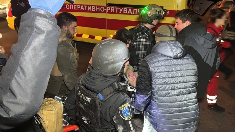Суспільне повідомляє про поранених, їх евакуюють до карет екстреної допомоги.