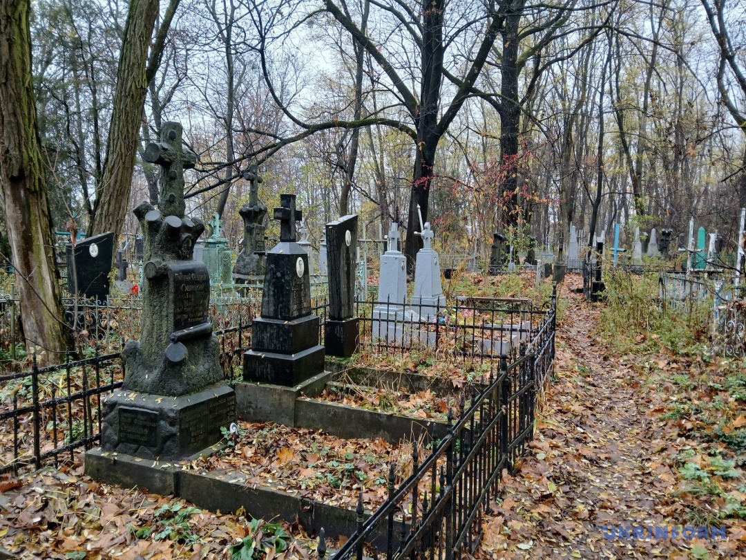 Трохи далі за поліклінікою – старе православне кладовище. В очі впадають пам’ятники у вигляді стовбурів дерев. Як пояснює Галицький, це вироби каменетесної фабрики, яка функціонувала в Радомишлі.