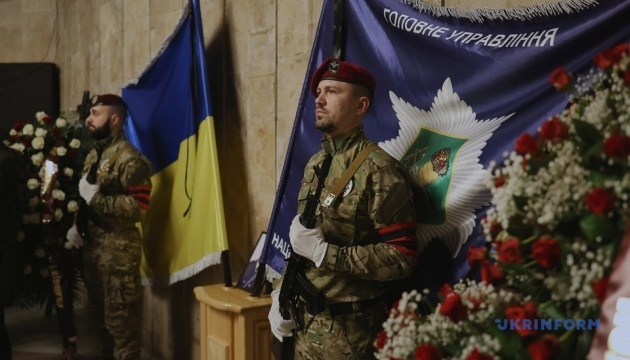 Була присутня родина, друзі та колеги правоохоронця, повідомляє кореспондент Укрінформу.