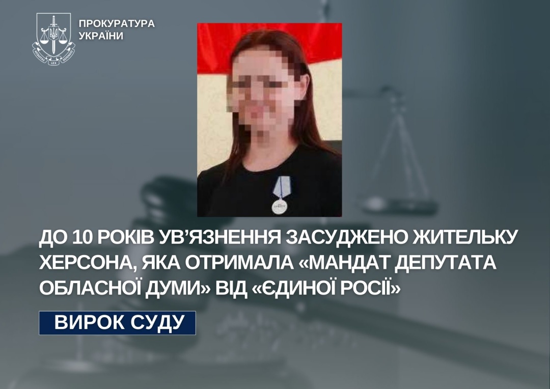 Окупаційній пропагандистці, депутатці обласної думи від «Єдиної Росії», присудили 10 років ув’язнення
