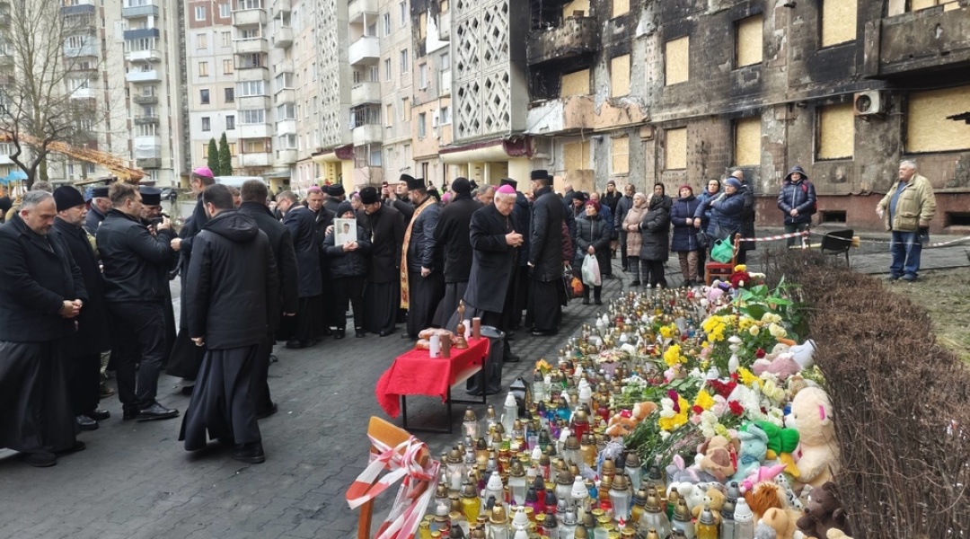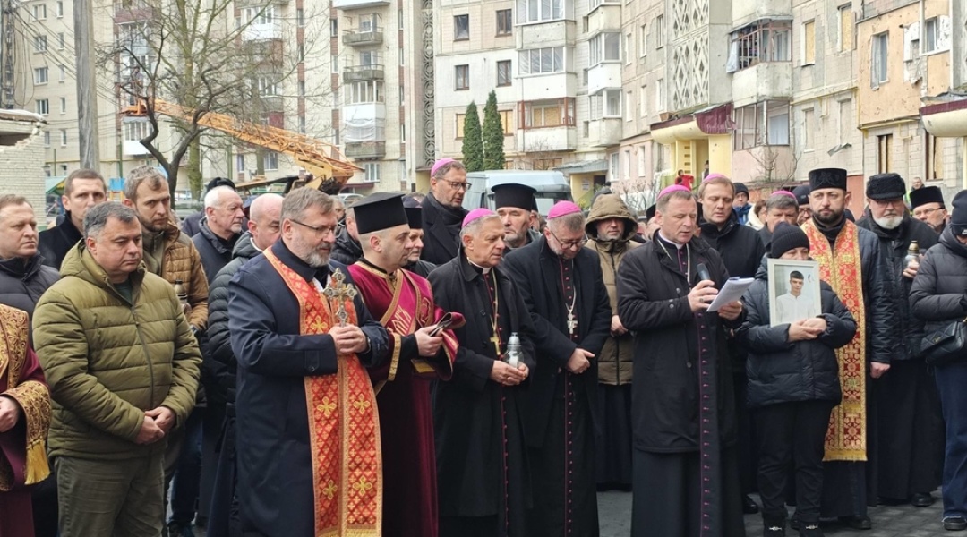 Блаженніший Святослав разом з єпископами та Апостольським нунцієм в Україні відслужили панахиди біля зруйнованого будинку на вулиці Стуса та пошкодженого внаслідок атаки РФ будинку на вулиці 15 Квітня. У спільній молитві взяли участь мешканці постраждалих будинків, тернополяни, представники влади і духовенства.