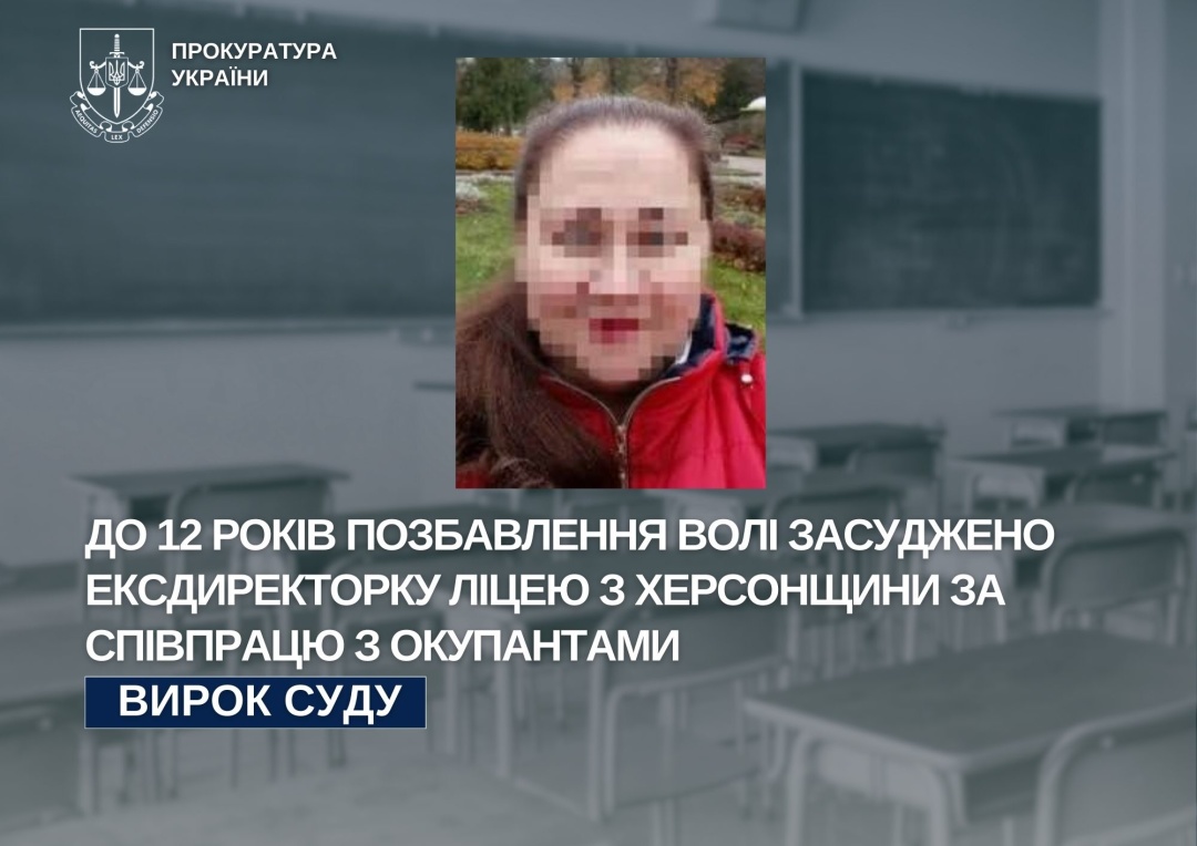 Ексдиректорку ліцею з Херсонщини заочно засудили до 12 років ув’язнення за колабораційну діяльність