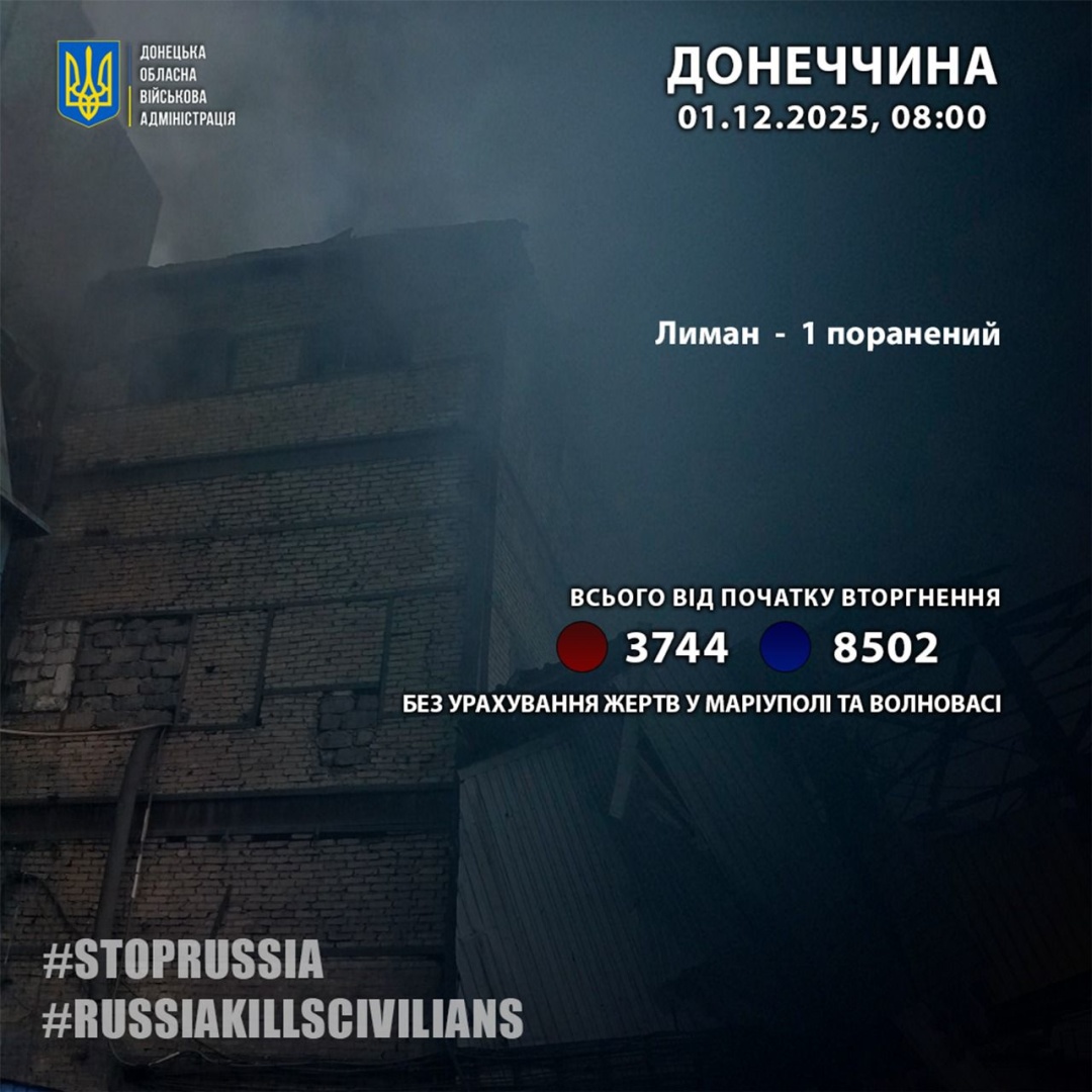 Як повідомляв Укрінформ, 29 листопада внаслідок російських атак на Донеччині загинули двоє людей, ще п'ятеро зазнали поранень.