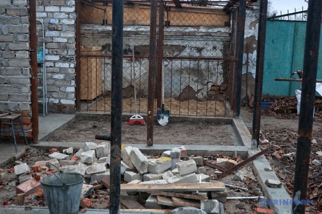 У дворі волонтер із товаришем власноруч будують вольєри для тварин, яких найближчим часом планують забрати з небезпечних територій.