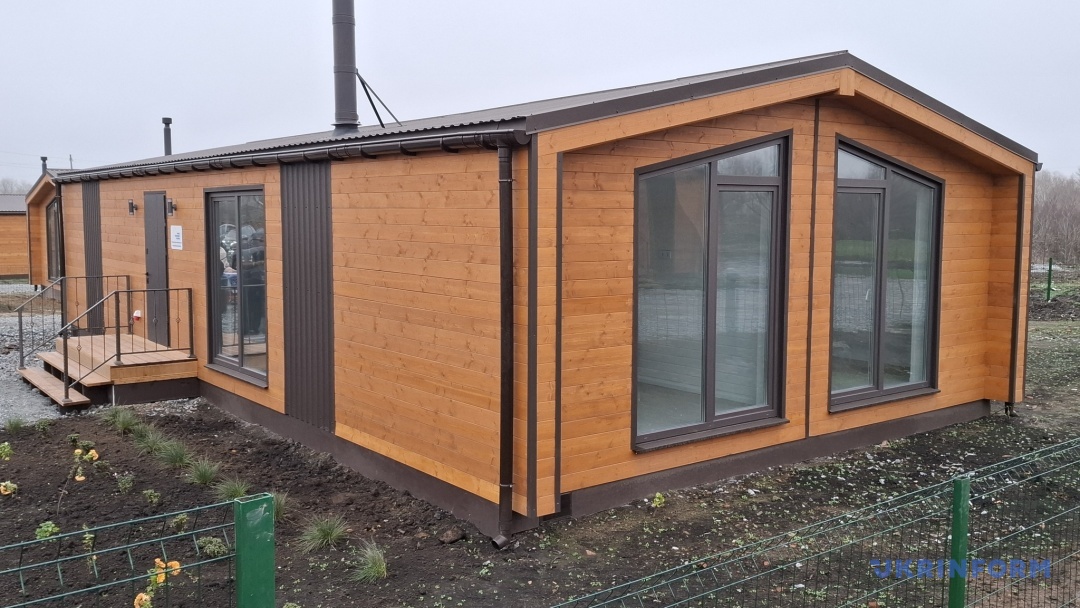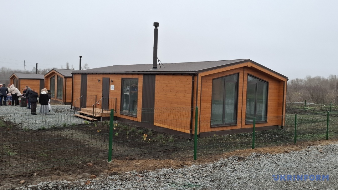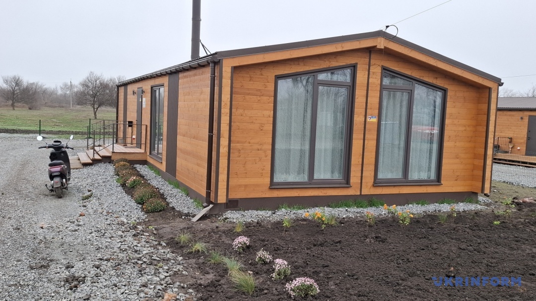 Оглянувши пункт здоров’я, прямуємо на іншу локацію. Тут п’ять родин ВПО отримують ключі від сучасних модульних будинків загальною площею 100 кв. м, обладнаних для комфортного проживання.