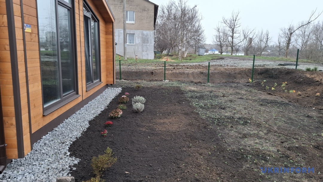 Люба проводить невеличку екскурсію присадибною ділянкою: «Грунт тут, як бачите, поки що не дуже придатний для вирощування рослин. Але нам обіцяють завезти чорнозем, тож весною плануємо засадити огород. Розбили квітник, щоб було гарно».