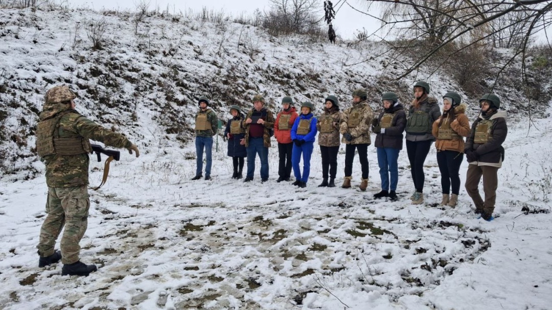 Це курс, де, зокрема, вивчають такмед, долають перешкоди на полігоні, вчаться маскуватися в полі, розбирати автомат і стріляти з нього. Одна з десяти членів групи – власний кореспондент, точніше, кореспондентка Укрінформу. Наскільки така підготовка доступна для середньостатистичного цивільного і чи реально пройти його 58-річній жінці, що має наразі вагу 42 кг і перебуває в не найкращому фізичному стані?