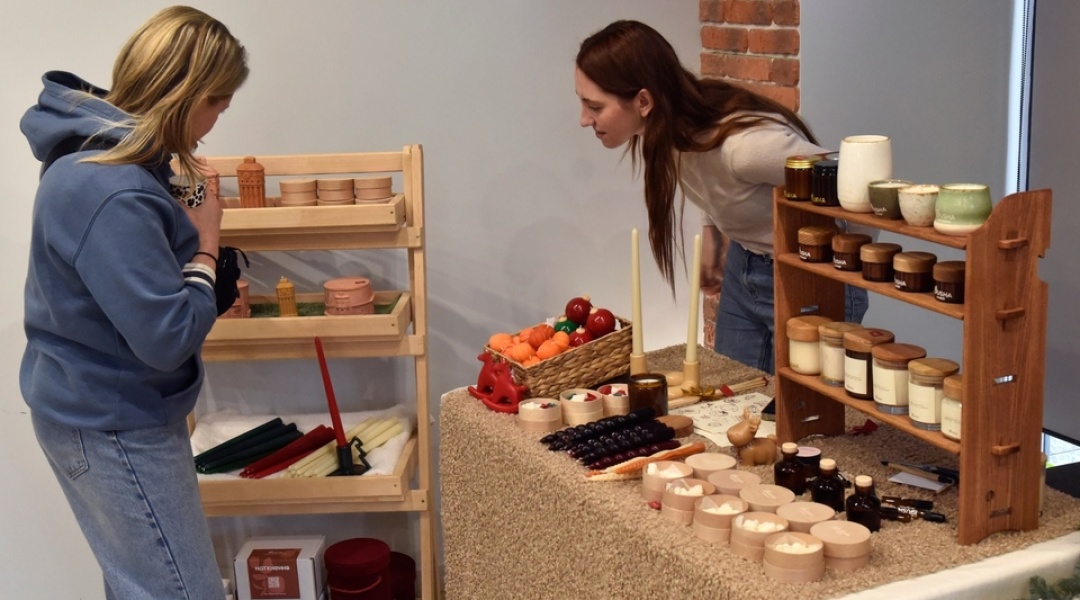 Зокрема, тут можна придбати екологічні дерев’яні іграшки, ароматні свічки та натуральні аромасаше, витончені плетива, різдвяні флористичні композиції, а також прикраси з натурального каміння, чаї тощо.