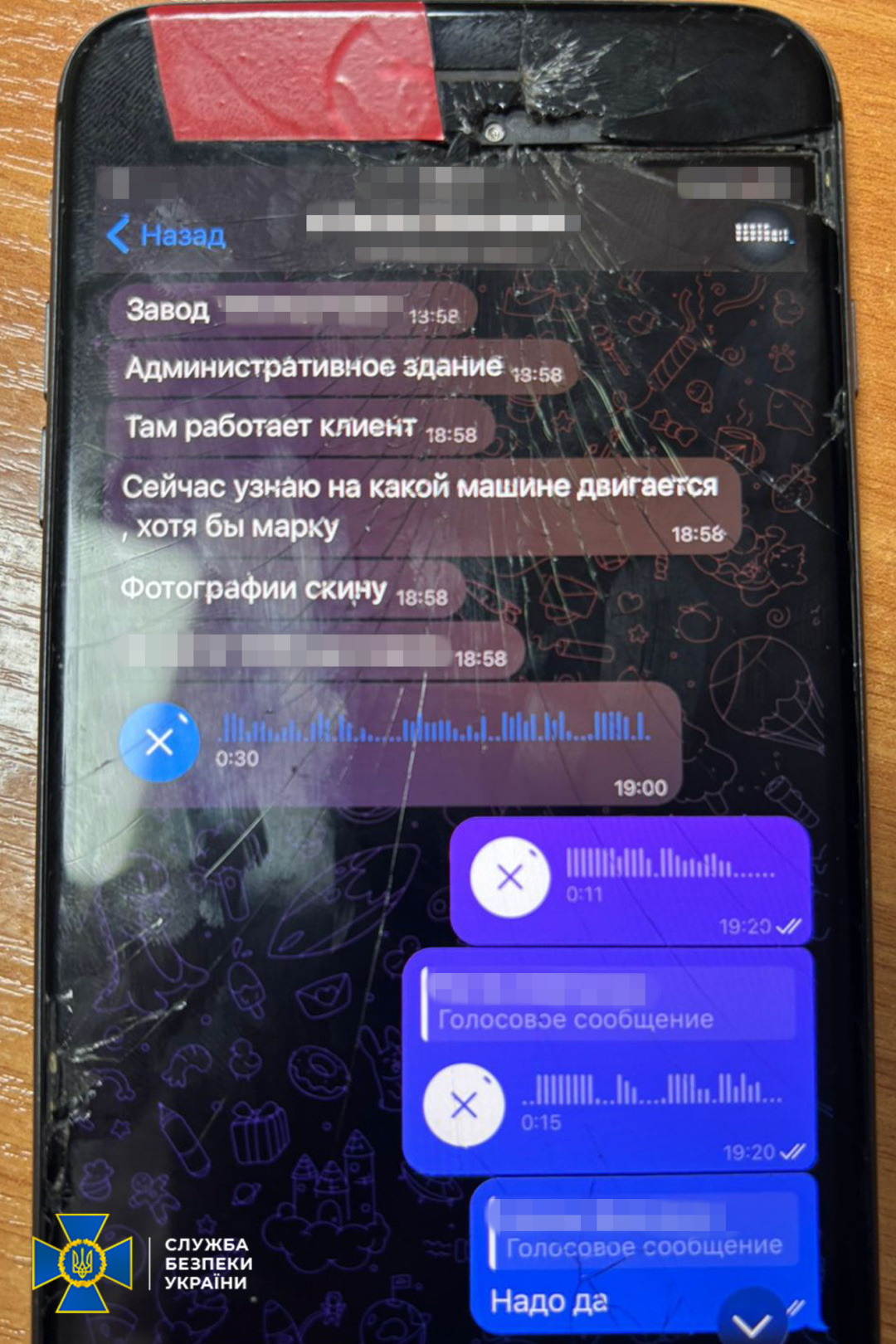 Українські правоохоронці задокументували, що агент відзняв відео, коли співробітник заводу виходив через КПП. Після цього зловмисник приховано йшов за чоловіком, щоб відстежити його домашню адресу.