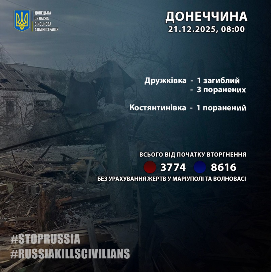 Як повідомляв Укрінформ, 19 грудня росіяни вбили на Донеччині одного цивільного, ще двох - поранили.