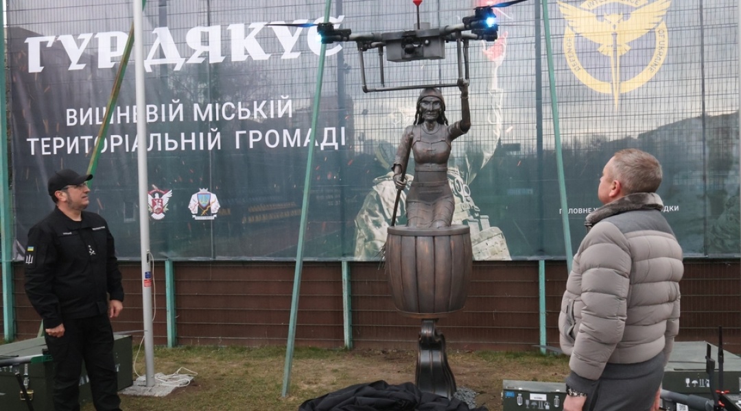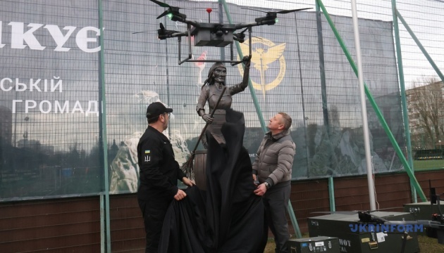 "Насправді це дуже така потужна робота... це і для того, щоб містяни завжди бачили і знали їхній внесок", - сказав волонтер. Також, для ГУР у рамках церемонії відкриття скульптури були передані 4 дрони типу "Heavy Shot".