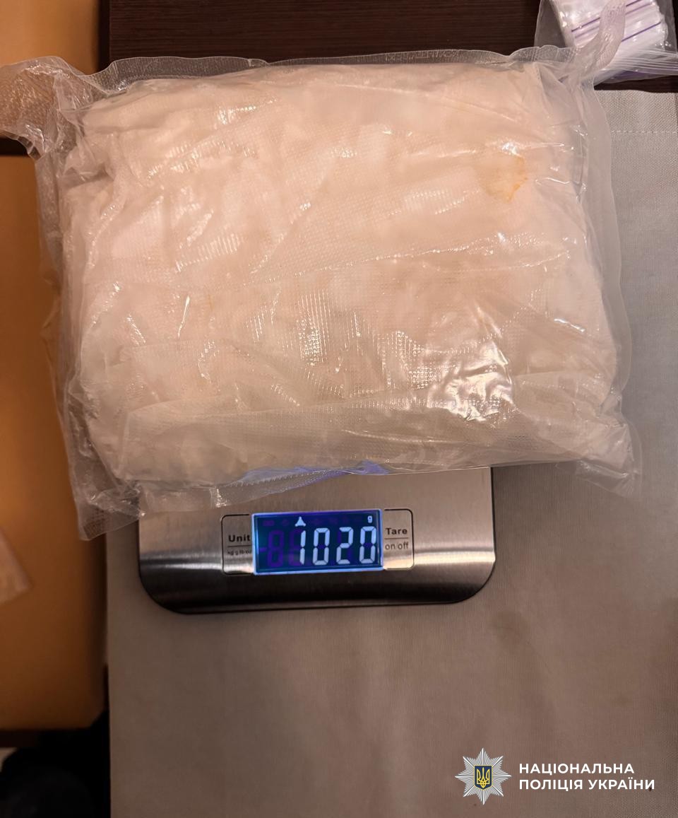 Під час огляду автомобіля Audi Q3 правоохоронці за допомогою службового собаки виявили психотропні речовини. Вони також провели обшук у квартирі за місцем зберігання «товару». Загалом було вилучено 3,77 кг метамфетаміну, орієнтовна вартість якого, за цінами «чорного» ринку, перевищує 9 мільйонів гривень.