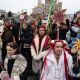 Учасники ходи в народних костюмах несли зірки за тих захисників та захисниць Україні, які полягли на полі бою, захищаючи нашу державу.
