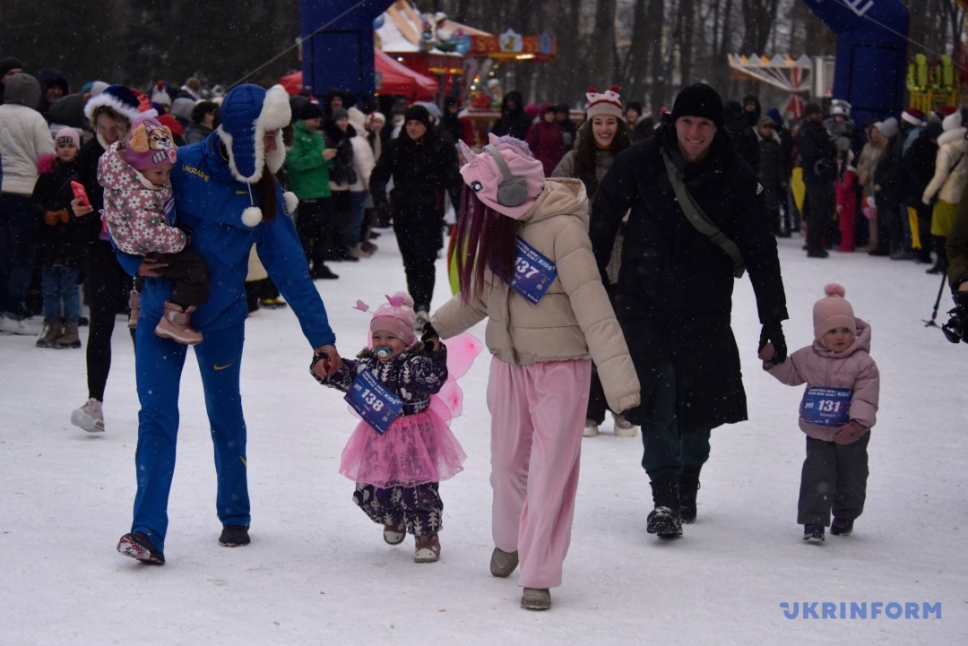 Першими дистанцію долали діти віком від 4 до 10 років, які бігли 200 та 500 метрів. За участь вони отримають пам’ятні дизайнерські медалі фінішера з новорічною мелодією та солодкі подарунки.