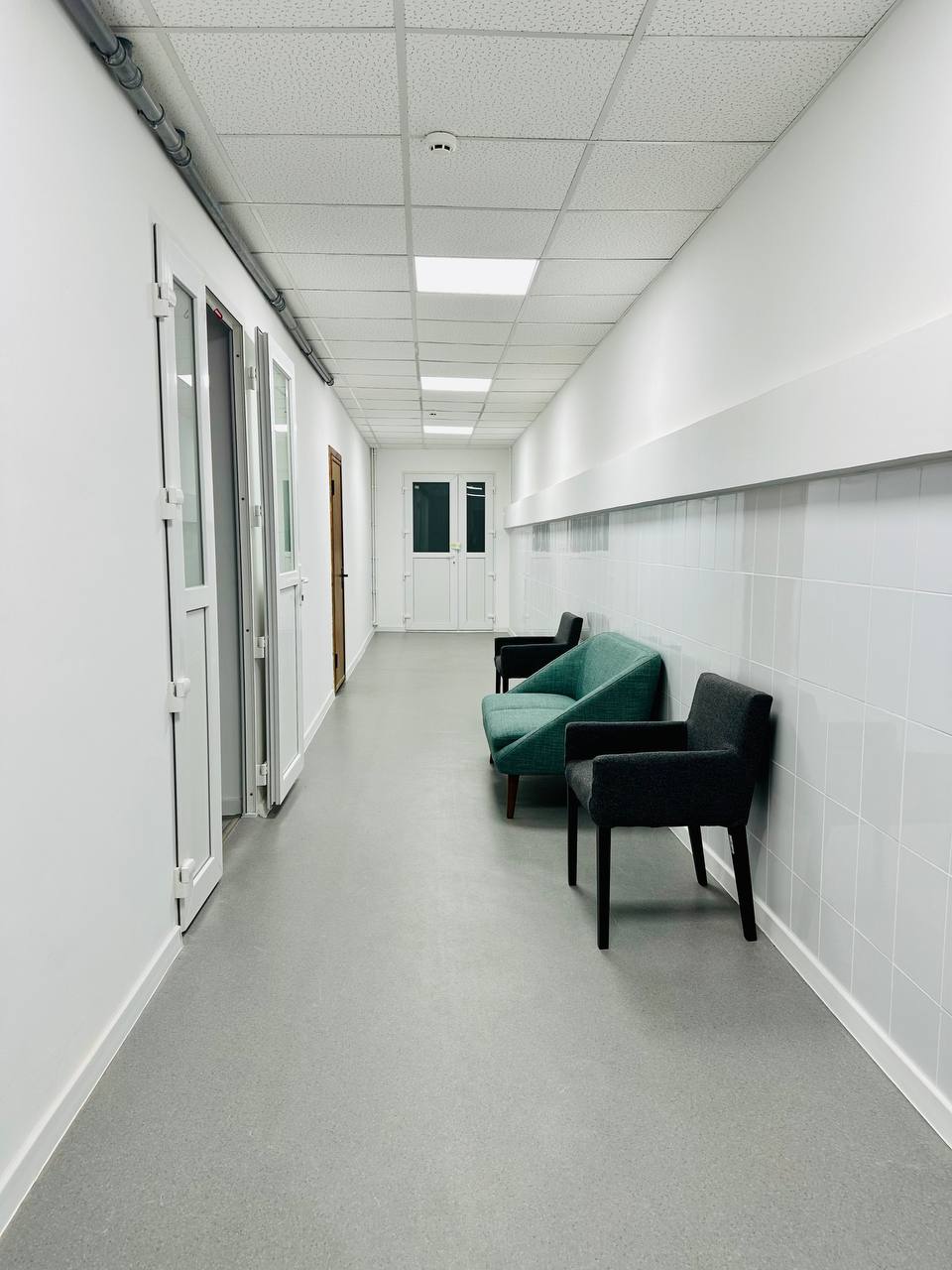 Зал для роботи з пацієнтами оснащений 3D-сканерами, дзеркальною системою для контролю постави та рухів, реабілітаційними тренажерами й іншим обладнанням, необхідним для підбору, налаштування протезів і навчання.