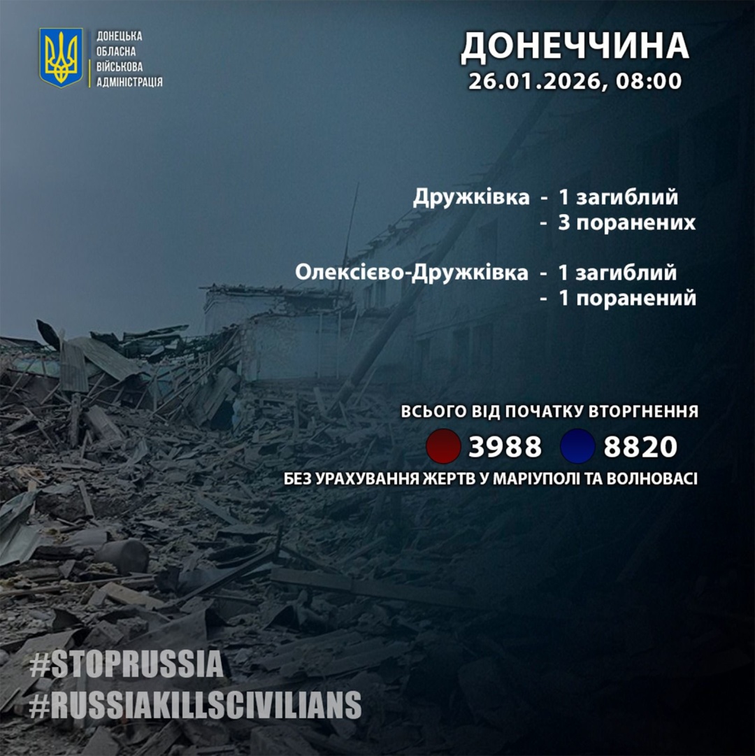 Минулої доби, 25 січня, російська армія вбила двох жителів Донецької області.