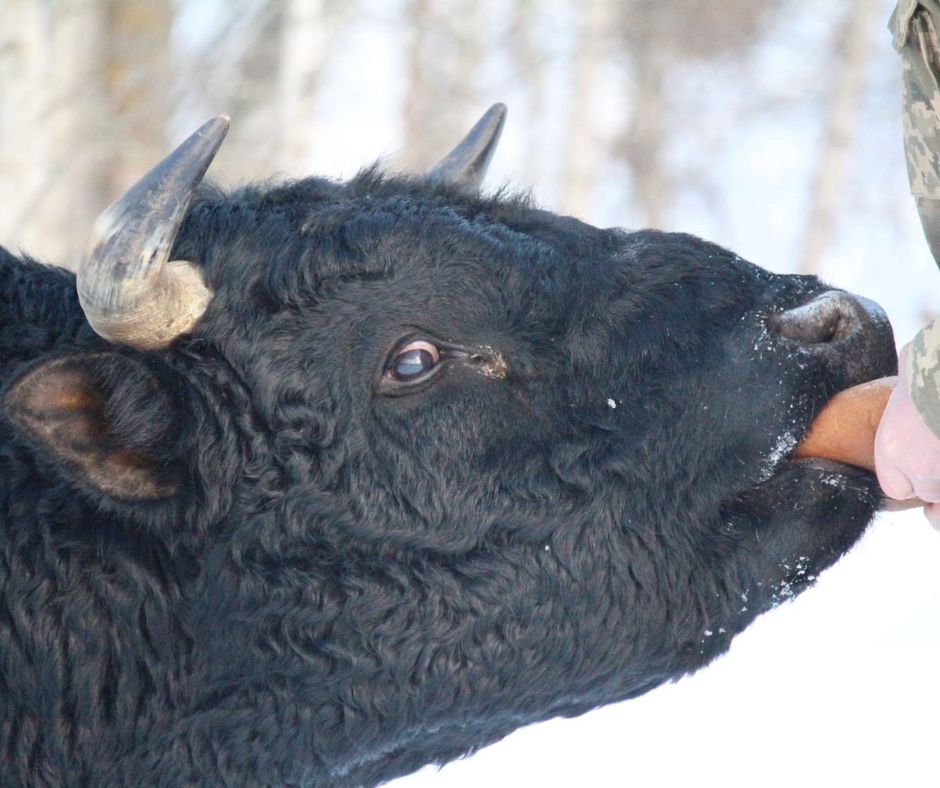 Сліди на снігу розповіли про нічний візит чотирьох вовків, які підходили впритул до стада. Втім, тварини виявилися не такими вже й беззахисними. Один із биків після цього пішов по вовчих слідах, очевидно, перевіряти територію та продемонструвати свою силу.