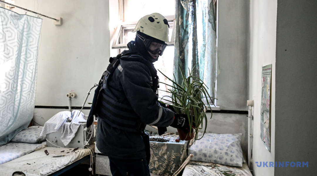 Російський дрон влучив у пологовий будинок в Запоріжжі / Фото: Дмитро Смольєнко. Укрінформ
