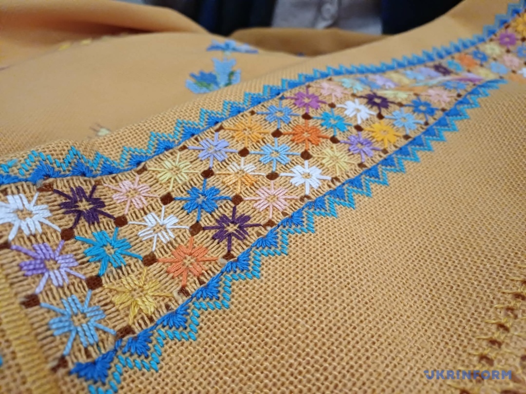 - Оце – поле, яке сплюндрувала війна, тому колоски і волошки на ньому розкидані у різні боки. А ось цей узір символізує нас усіх: різних, але об’єднаних нашою Україною, – пояснює свою вишивку майстриня.