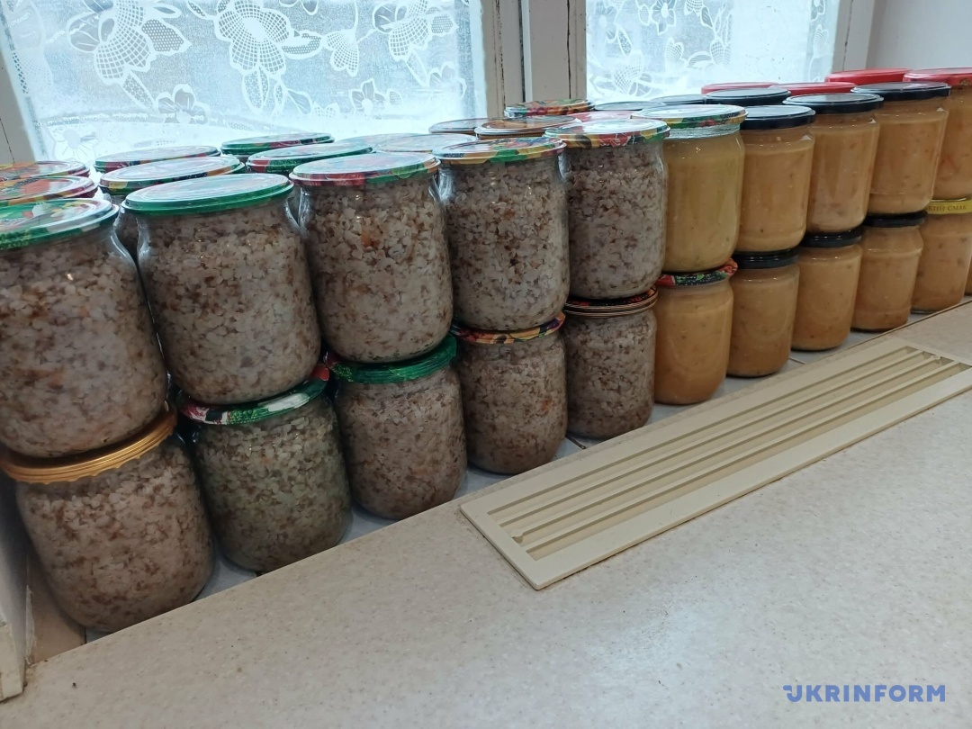 - Від початку повномасштабної війни з нами працюють чотири групи волонтерів. Добре, що приїжджають не одні за одними – буває, через тиждень-два. Так нам легше. А ось два тижні підряд потрібно було завантажити по дві групи, то вже складніше. Що ми готуємо на фронт? Горох, гречку, рагу з рисом. Овочі заготовляємо ще влітку. Взимку стараємось, аби був запас свіжої капусти. Тушкуємо її, додаємо різні овочі – теж тушковані – й засипаємо привареним рисом. Так виходить 65 півлітрових баночок нашого різотто, – розповідає пані Тетяна.