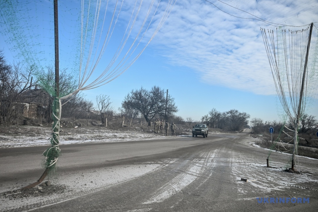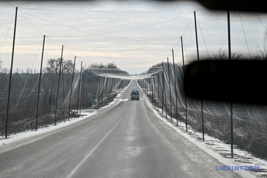 За тиждень тут побільшало розбитих будинків. Деяких не стало зовсім. Дороги у прифронтових селах затягнуті антидроновими сітками і… оптоволоконним «павутинням». Воно тонке і нагадує справжнє павуче мереживо. Якби не сонце, його було б зовсім не розгледіти. Оптичні «дроти», більше схожі на нитки чи волосінь, допомагають ворожим операторам керувати дронами. Заглушити такі безпілотники не можна, а от розірвати зв’язок – так.