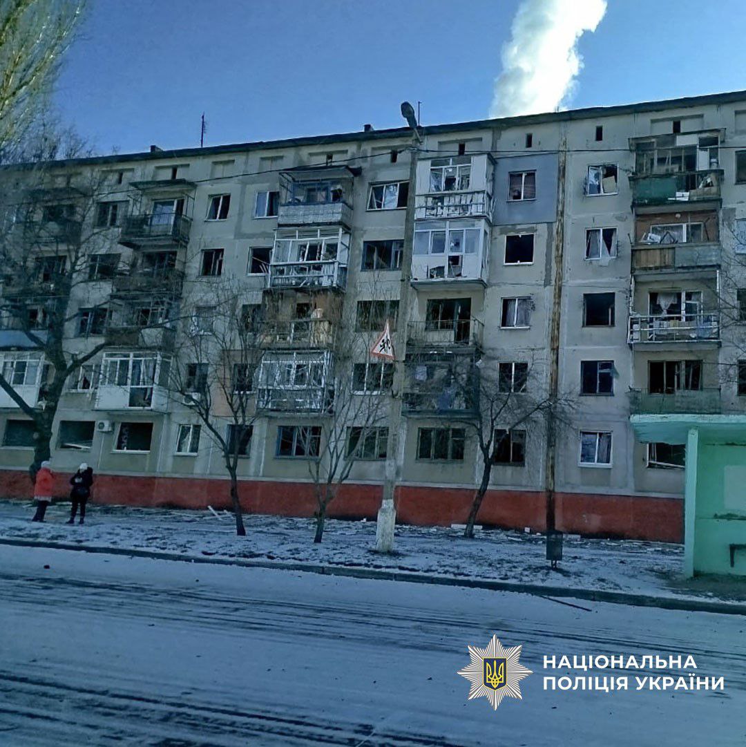 Миколаївку атакували три дрони, де було травмовано мирного жителя, пошкоджено багатоквартирний і приватний будинки, адмінбудівлю.