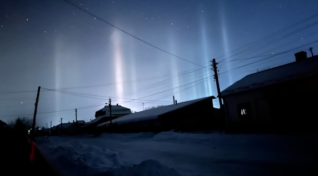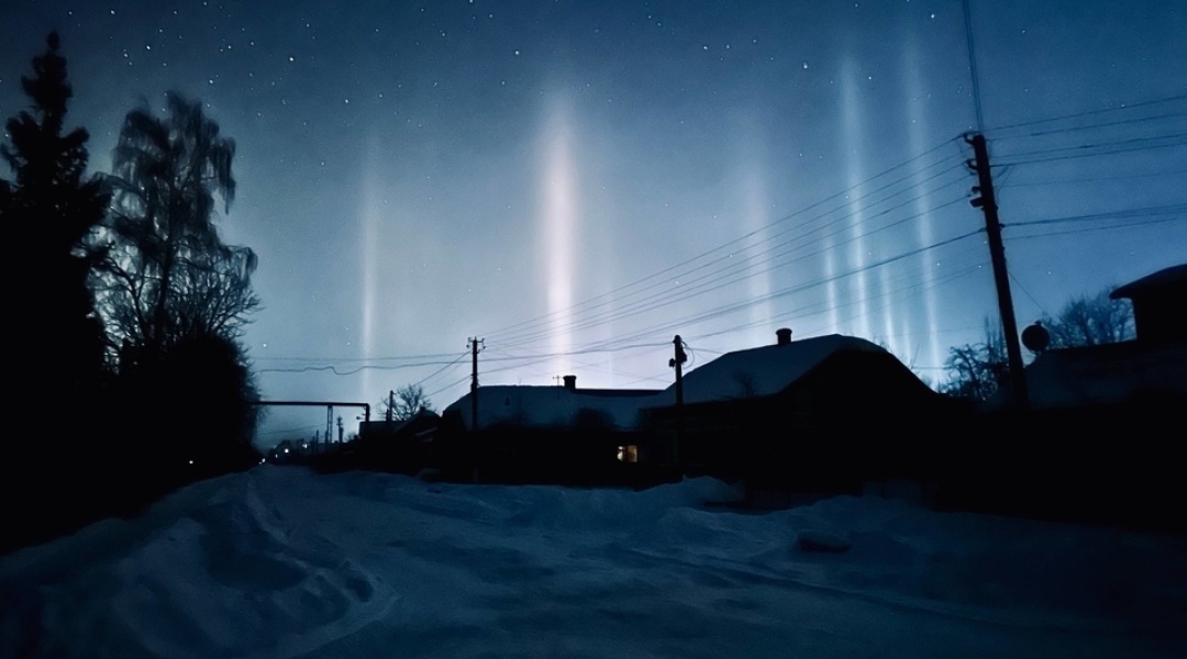 У небі над Тернопільщиною зафіксували рідкісне оптичне явище «світлові стовпи»