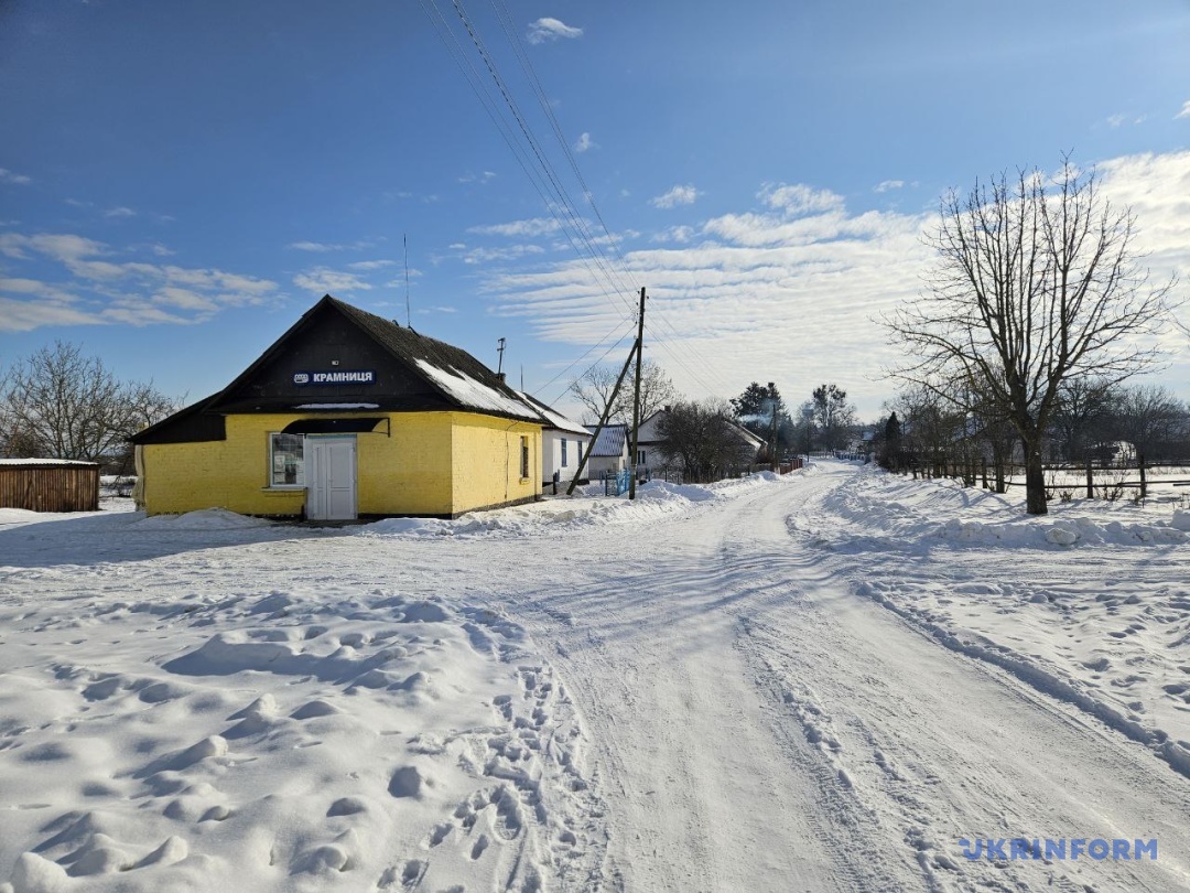 На вулиці кілька авто з тележурналістами. Загалом у селі дуже тихо, воно й зрозуміло, бо діти у школі, дорослі займаються своїми справами, на вулиці просто так стояти довго не будеш – мороз.