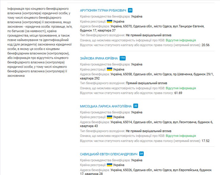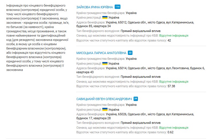 У ході розслідування з’ясувалося, що засновники клініки ТОВ "Медичний дім Одрекс" та власники землі ТОВ "Фабрика Акація", яку вона орендує, майже повністю збігаються. За даними сервісу YouControl, Ірина Зайкова, Лариса Мисоцька та Євген Савицький володіють частками в обох компаніях. Контрольний пакет в "Одрексі" належить Ірині Зайковій, значну частку має Лариса Мисоцька, невелику – Тигран Арутюнян, а Євген Савицький володіє мінімальною часткою.