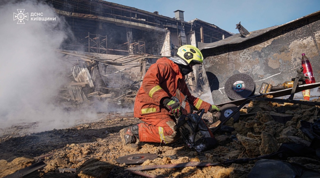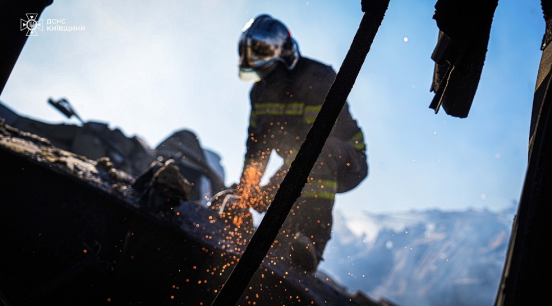 Ліквідація наслідків російського обстрілу в місті Яготин / Фото: ДСНС