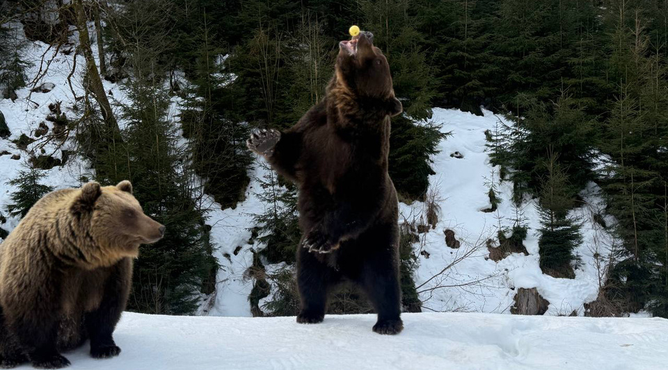 "Сьогодні зима ще тримає гори в прохолодних обіймах, однак у Реабілітаційному центрі бурого ведмедя Національного природного парку "Синевир" уже відчувається подих весни. Частина мешканців центру почала поступово виходити зі стану зимової сплячки — цього року вона виявилася коротшою та менш глибокою, ніж зазвичай", — ідеться у дописі.