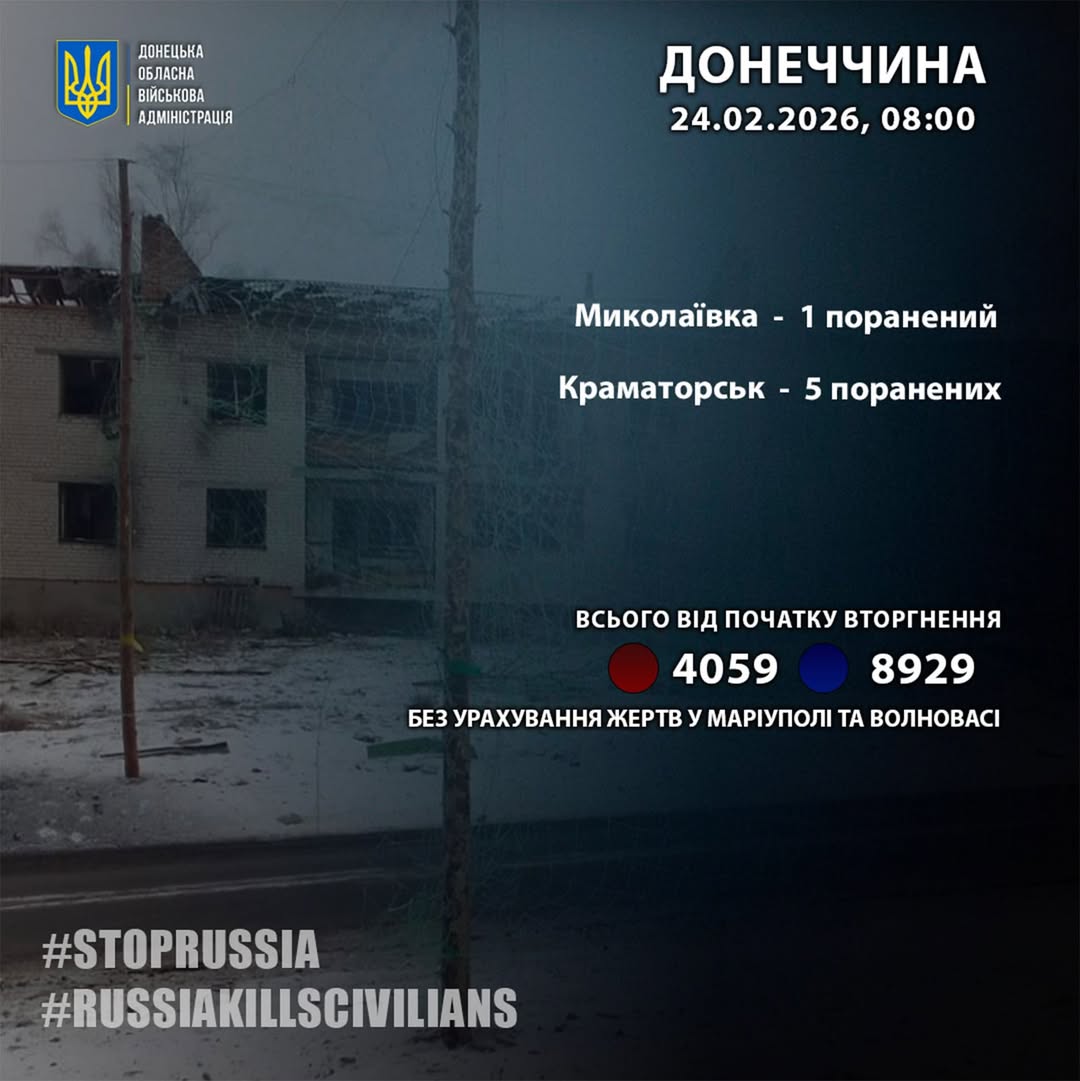 Як повідомлялось, 23 лютого Краматорськ перебував під комбінованою російською атакою. Ворог завдав ударів БПЛА "Герань-2"та V2U, а також двома ФАБ-250. Поранень зазнали п'ятеро чоловіків.