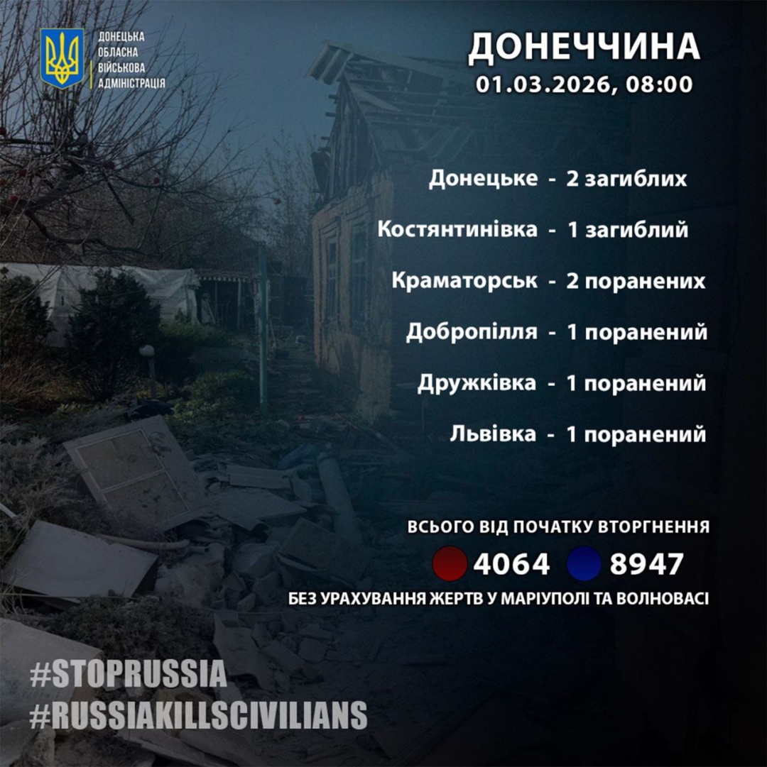 Минулої доби внаслідок обстрілів росіян загинули троє жителів Донеччини та ще п’ятеро дістали поранення.