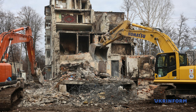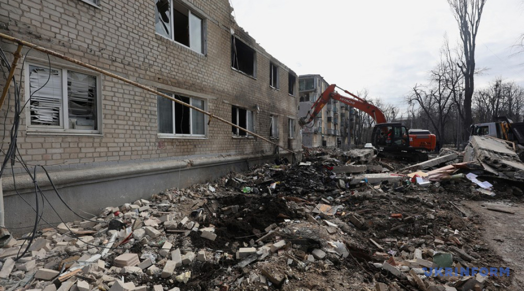 Як повідомляв Укрінформ, внаслідок російського удару фактично зруйнований під’їзд п’ятиповерхового житлового будинку у Київському районі Харкова.
