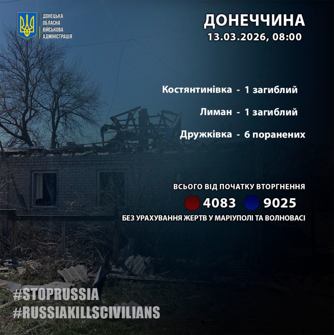 За його словами, росіяни вбили одну людину у Костянтинівці та одну у Лимані. Крім того, у Дружківці ще шестеро людей дістали поранення.