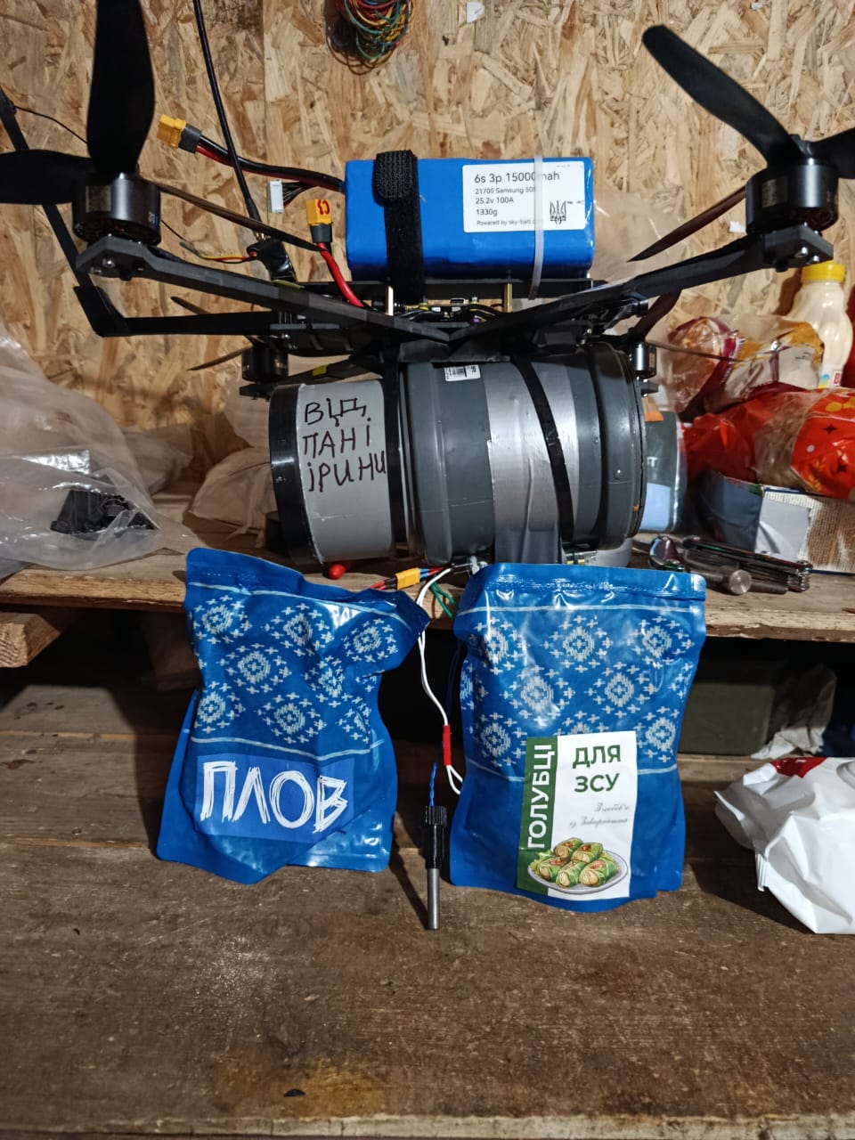 У 2023 році користь такого пакування зробилася ще очевиднішою, адже подекуди єдиною можливістю доправити їжу на передові позиції стали дрони. Тоді ж волонтери почали й розширювати асортимент страв.