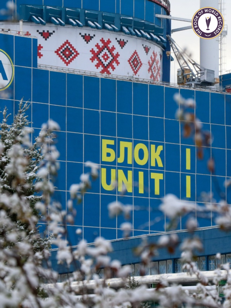 «На Хмельницькій АЕС офіційно зафіксували рекорд України у категорії «Розміри» – найбільший мурал у вигляді українського національного орнаменту (вишиванки), нанесений на реакторні установки атомної електростанції на висоті 45,4 метра. Мурал охоплює два енергоблоки ХАЕС: загальна площа розпису становить понад 1,8 тис. квадратних метрів, його довжина перевищує 220 метрів, а максимальна висота сягає понад 9 метрів», - ідеться у повідомленні.