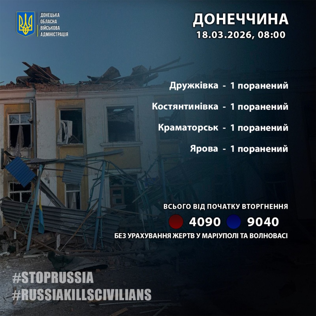 Російські загарбники минулої доби, 17 березня, завдали поранень чотирьом жителям Донецької області.