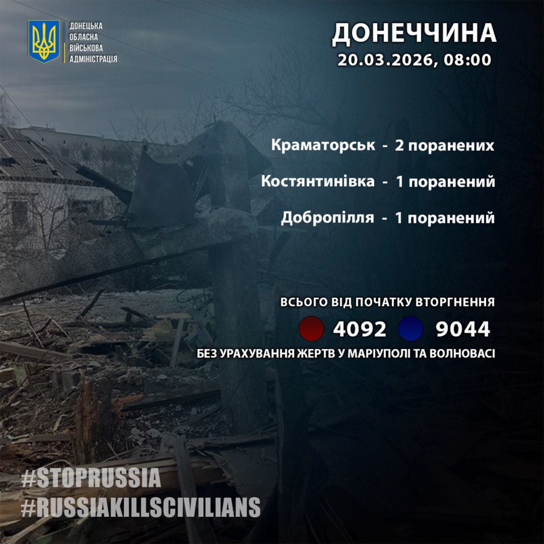 У Донецькій області російські війська минулої доби поранили чотирьох цивільних.