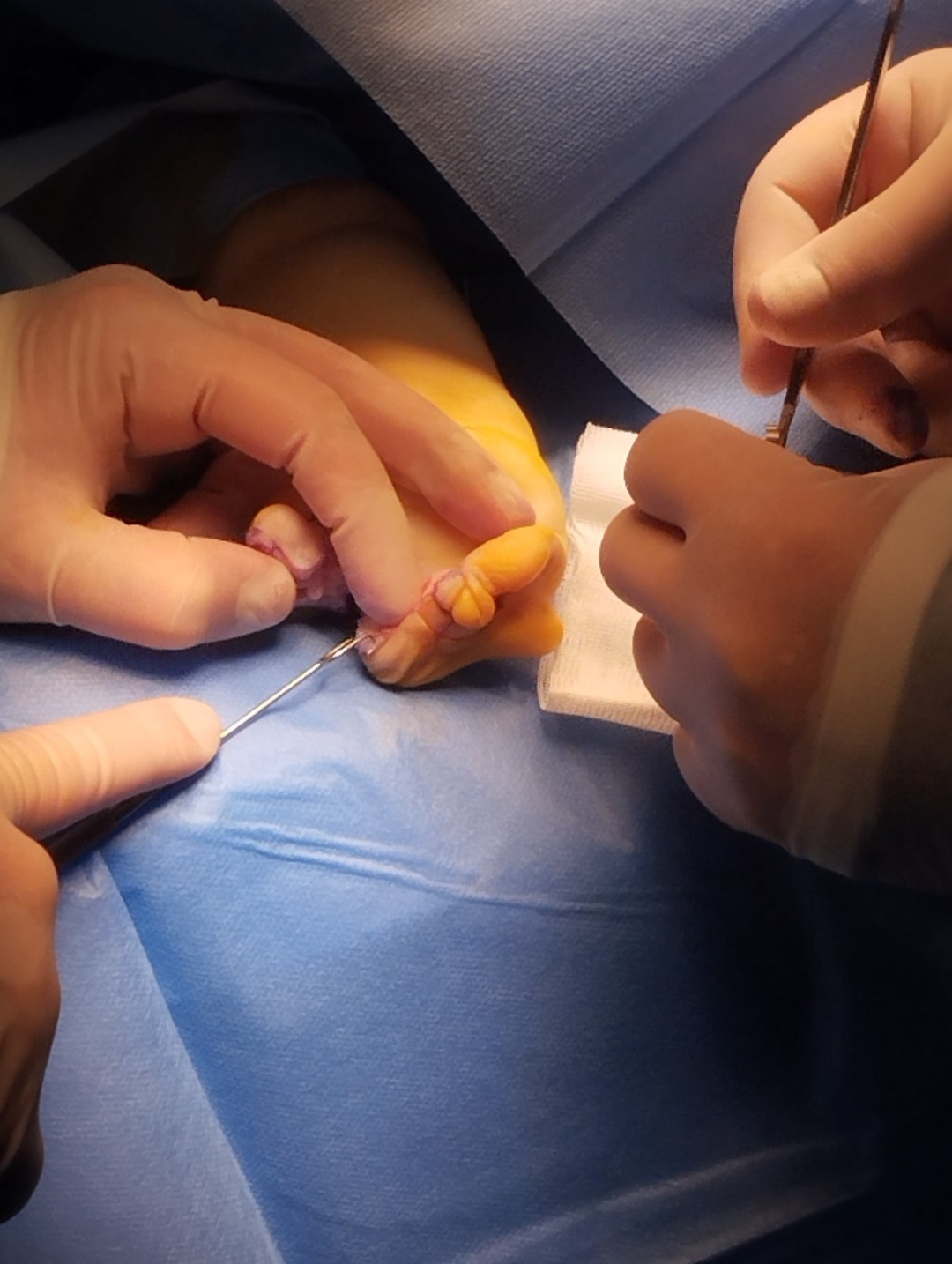 У межах другого етапу реконструктивного лікування медики виконали роз’єднання синдактилії між 1-2 та 4-5 пальцями лівої кисті з відновленням анатомічної довжини та функціонального положення пальців. Також проведено аутодерматопластику - закриття післяопераційних дефектів із використанням власних тканин пацієнта, що значно знижує ризики відторгнення та сприяє кращому загоєнню.