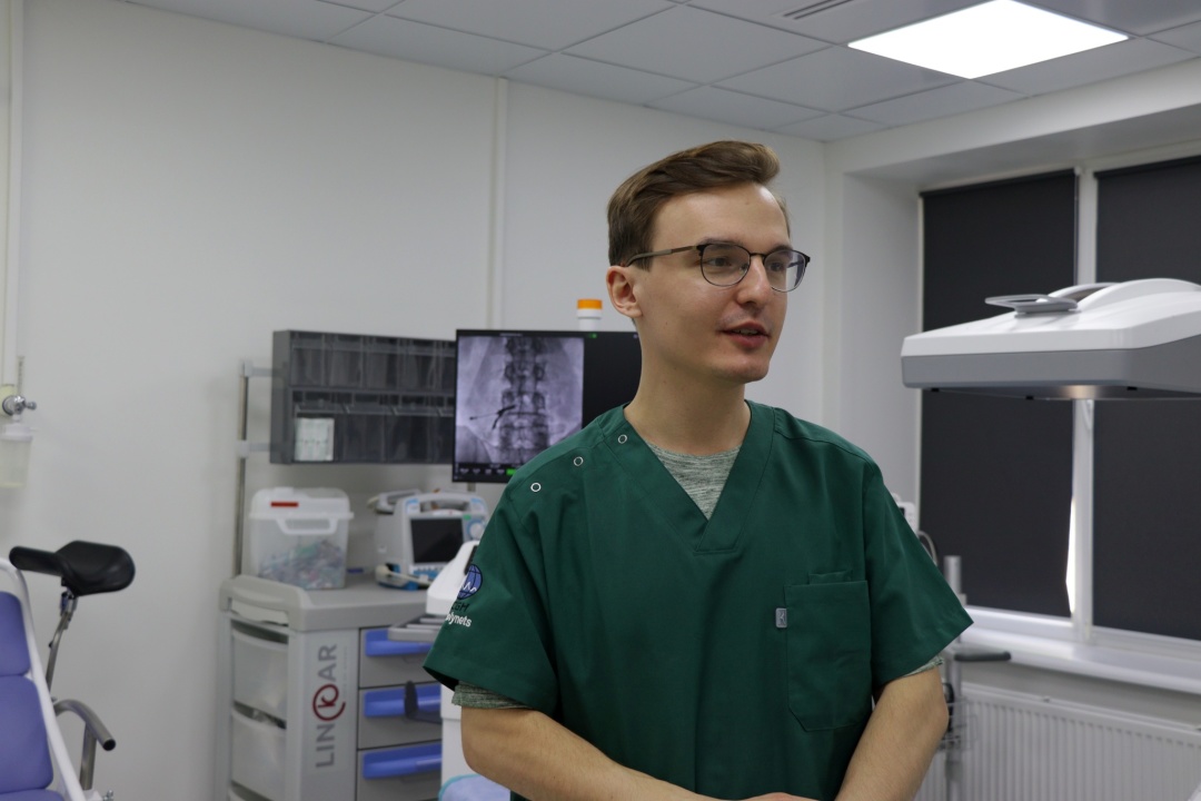 - Ми чітко, під рентген-навігацією, зайшли голкою в місце, де зі спинного мозку виходить нервовий корінець. Ввели контраст і побачили, що в цій ділянці є затискання, яке створює хронічне запалення. Далі ввели медикаменти. Це фактично інноваційний метод лікування в Україні, – говорить Роман Смолинець, який і проводив процедуру.